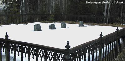 Foruten en rekke gamle gravhauger har også Asak et gravsted av nyere dato. På gården Mellom Asak bodde det i begynnelsen av 1800-tallet en offiser som het Christian Otto Heiss. Han hadde en sønn som het Otto Fredrik Sigismunn som døde bare 22 år gammel. Foreldrene sørget så over ham at de ikke ville gravlegge ham på kirkegården ved Skedsmo kirke, for det var for langt unna. Derfor ble han gravlagt i skogen like ovenfor husene, på andre siden av Gudleifs vei som fører bort til kirkeruinen. Siden ble også foreldrene og søsteren gravlagt der, og det ble reist støtter og satt opp et jernstakittgjerde rundt. Heiss gravsted er et minnesmerke over en slekt som har betydd mye for Asak. Navnet lever også videre i Heisshagan.