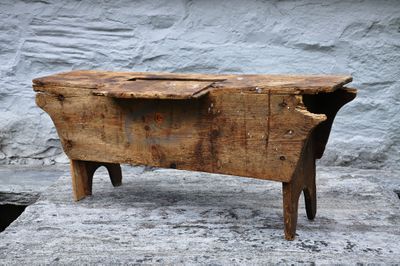 Eit hol på framsida, kan tyde på at ein pode frå seinare generasjonar har styrt litt på eiga hand. Benken hyste (innheldt) sko-lestane, og det gjer han framleis. Tidlegare generasjonar laga sine «fotformsko» på desse lestane. Lest er altså ein mal eller modell, og den har litt ymse fasongar og fleire størrelsar. Kor elegant, - ja det er no opp til augene som ser. I tidlegare tider og til ut i 1950-åra, var det vel viktigast å ha sko.