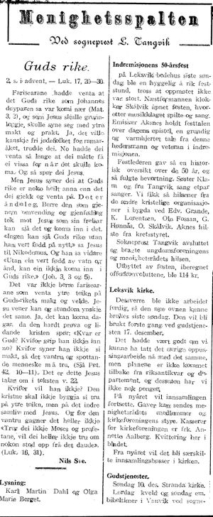 Søndag 17 desbr. Leksvik kirke.