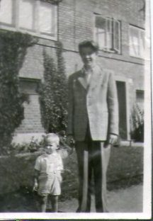 Da hadde jeg et betydelig bedre forhold til familiens andre av hankjønn, min far. Vi forsto hverandre alltid, og han tolererte min sprudlende livlighet betydelig bedre enn min mor, kanskje kjente han igjen mye fra sin egen barndom. Jeg var derfor veldig glad i min far, og noen av barndommens høydepunkter var da vi dro ned til sentrum, og jeg kunne ha ham bare for meg selv. På slike helgedager skulle far alltid innom bilbutikker og prøvesitte Hillman Minx, Vauxhall Victor o.a. av tidens moderne biler. Han hadde førerkort fra 1929, men måtte vente enda noen år før økonomien tillot bilkjøp. Hvis mor og søster var bortreist, kunne vi gå på restaurant. En gang på Engelborg nedenfor Carl Berner plass spiste vi fiskeboller, og jeg ble gruelig mett. Spurte da forsiktig om jeg kunne slippe resten av maten. Dette hadde aldri blitt tillatt av min mor, men far tillot dette, med en varme i stemmen som jeg aldri har glemt.