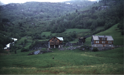 Me budde i dei gamle husa på Dysje, som stod innmed loptet som me ser på biletet. Eit år budde me i det nye huset, men papa tykte det var for fint her, og for mykje vasking, slik at me budde resten av tida i dei gamle husa, med åren som varme til matlaging. Huset var i to etasjar, og me ungane låg oppe og papa og Torleiv nede i stoga. Me høyrde heile tida den evige susen frå Dysjebekken, når det var regn auka bekkesusen kraftig. Me var redde hoggormen heime, men her trong me ikkje tenke på den, for her var ingen hoggorm.