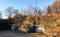 - Tilfluktsrom fra 1939 ved Kjeller gård. Stabbesteiner i den gamle adkomstveien til gården over tilfluktsrommene.Foto: Steinar Bunæs (2021).