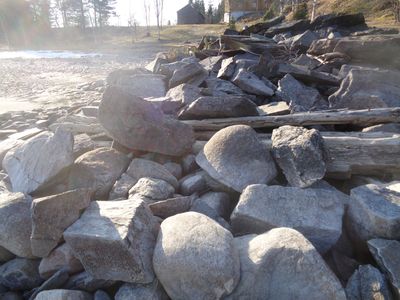 Steinkaia En meget gammel steinkai ligger i strandsonen ved Teigen. Dette er et yngre anløpssted for båttrafikken, [??] enn et kaianlegg som ligger ca. 300 meter lengre øst ved Storsand. Den er bygget ved hjelp av trekasser i tømmer, laftet sammen i hjørnene og fylt med stein (samme metode som middelalderkaiene i Trondheim). I løpet av 2015 vil det foreligge en datering av kaia.
