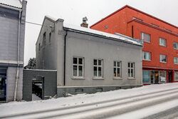 Tidligere kolonialbutikk på hjørnet, Klostergatens kolonial, innehaver Margit Johannessen. Regulert for bevaring i henhold til vedtak 1. november 2005. | |