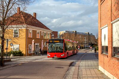 En buss passerer jernbanestasjonen i den østre delen av Kolbotnveien.