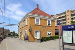 Kolbotn jernbanestasjon, ekspedisjonsbygning oppført i 1912 etter tegninger av Harald Kaas