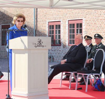 Omkring 30 soldater fra Vingerske kompani stod æresvakt da de kongelige ankom festning. Til Sisseners store skrekk kom ikke dronningens bagasjevogn seg inn festningens ytre port, vognen var rett og slett for høy. Sissener beordret derfor straks å grave veien ned, slik at vognen kunne passere. I forkant av kongen kom deler av hans svenske følge. Det var ingeniøroffiser Roosen som hadde hatt ansvar for å pynte utendørs til kongens ankomst, mens kommandantfruen Maren hadde ansvar for alt inne i kommandantboligen.