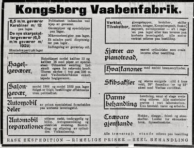 På 1800-tallet produserte KV geværer, pistoler, sabler og andre håndvåpen. Blant pistolene var en revolvertype kjent som Kongsberg-Colt. I 1895 begynte serieproduksjon av rifler av merket Krag-Jørgensen, og under første verdenskrig begynte fabrikken å produsere kanoner.
