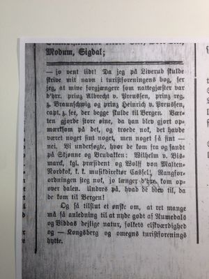 - ↑ Avisartikkelen "På inspektionsrejse" fra Kongsberg Adresse 03.09.1892
