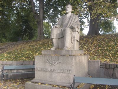 I hellinga mot Rådhusplassen er det reist et monument av president Franklin D. Roosevelt. Det ble finansiert gjennom en landsomfattende innsamling, som takk for USAs hjelp under og etter andre verdenskrig. Monumentet er utført i granitt av Stinius Fredriksen og ble avduket av presidentens enke Eleanor Roosevelt den 7. juni 1950.