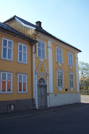 Konventionsgården står rett ved cellulosefabrikken Peterson & Søn, og brukes som firmaets administrasjonsbygning.