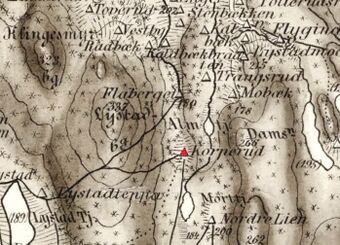 | Korperud på kart fra 1884. Kartverkets historiske arkiv. | |