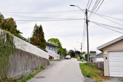 Veien har navn etter Krabberødstrand gård og ble navnsatt i 1970. Bebyggelsen er oppført rundt 1974–1976 og består av sju eneboliger og sju vertikaldelte tomannsboliger.