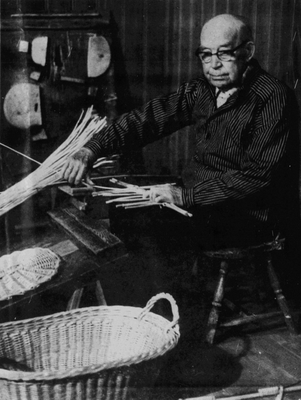 | Jeg er født den 26. september 1892 her på Stensmyren i Nedre Eiker. Flere av mine forfedre var håndverkere. Min oldefar og min bestefar hadde smieverksted, og far drev som smed og hjulmaker ved siden av et mindre gårdsbruk. Jeg var med bestefar og trakk smiebelgen før jeg begynte på skolen, og i dørstokken i smia slo jeg den første spikeren! Der var det flere sprekker, og disse var det så greit å sette spikeren litt ned i. Da kunne jeg bruke begge hender så det var lettere å løfte hammeren! Dørstokken ble til slutt helt beslått med spiker og brukte hesteskosøm. Men etter hvert som kreftene øket, ble også kniv, sag og høvel av de ting som var interessante å bruke. Omkring 1900 begynte far å drive en del med grønnsakdyrking, og hele sommeren ble derfor - den tiden som ikke skolen krevde - opptatt med luking og utearbeide. Det ble ikke meget tid til å være på verkstedet om vinteren heller, og jeg ble 19 år før jeg begynte i lære. Jeg forsøkte først å komme i lære som elektriker, men da det ikke lykkedes, fikk jeg lyst til å bli kurvmaker.