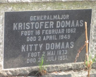 Kristofer Domaas er gravlagt i familiegrav for sin kones familie (Ringnes) på Vår Frelsers gravlund i Oslo. Tittelen Generalmajor er benyttet på gravminnet.
