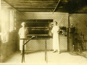 Bakerovnen ble i begynnelsen fyrt med ved, men i 1926 gikk en over til elektrisk drift. Den opprinnelige bakerovnen ble beholdt, men nå skjedde oppvarmingen med en elektrokjel på 29 kW fra Oslofirmaet «Elektra». Snart ble det også anskaffet egne elektriske ovner for baking av kaker.