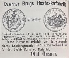 Kværner Brug Hesteskofabrik Annonse fra 1877