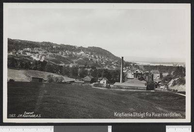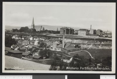 Kværnerdalen sett mot Vålerenga, Vålerenga kirke og Vålerenga skole i bakgrunnen