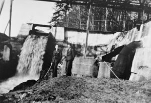 Bildet viser også tydelig detaljer i veitas konstruksjon og virkemåte. Veita er hevet i forhold til terrenget og den lille ”fossen” er overskuddsvann som tas ut når det var for mye vann i veita til at vasshjulene/turbinene kunne ta i mot veita i hele sin bredde. Det var som regel ikke tillatt å bade i de dype dammene nær turbinhusene.