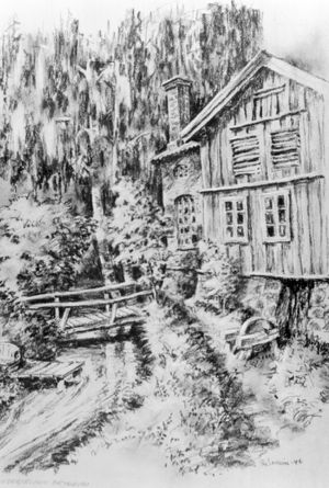 Stampen, liten bedrift for stamping og garving. Lå rett overfor Øverbakken.