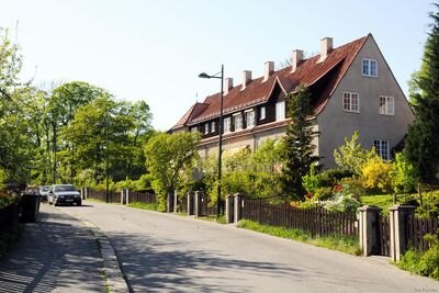 Mens Oslo Havebyselskap preger bebyggelsen mellom Pastor Fangens vei og Nils Lauritssøns vei, er arkitekturen noe annerledes langs det siste stykket nordvestover til Bergsalléen. Her dominerer AS Norsk Husbygningskompanis trehusbebyggelse fra 1928, tegnet av arkitekten Adolf Jensen Talberg som også hadde tatt del i utformingen av Ullevål Hageby. Disse boligene ble videresolgt til private, og regnes således med ikke til hagebybebyggelsen. Friområdet Harald Hals' park ligger på motsatt side av husene.