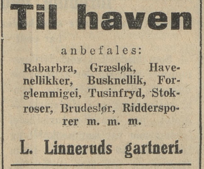 Omlag ti år seinere ble gartneriet kjøpt tilbake av Lauritz' sønn Borger Linnerud, og seinere solgt videre til en annen sønn Leif Linnerud. Slik overlevde navnet Linneruds Handelsgartneri i ei tid.