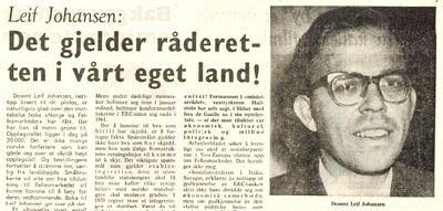 - Aftenposten 6. desember 1961: Omtale av Leif Johansens doktordisputas.