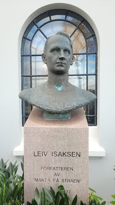 Byste av Leiv Isaksen utenfor Rogaland Teater, laget av Hugo Frank Wathne.