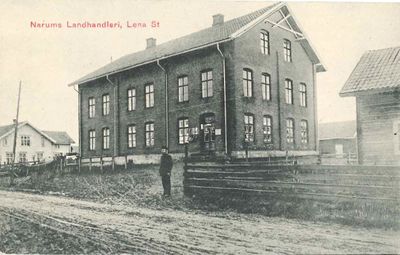 Skreiabanen åpna i 1902, med stasjon på Lena. Rundt stasjonen vokste det i løpet av få år fram et handelssted, som tok over som økonomisk knutepunkt etter Lillo, vel 1 kilometer lenger nordøst. Blant forretningene som åpna i åra 1902-05, var Valset (Narumsgården), Ranheim og Alfhaug. Like ved stasjonen, i krysset med Lenagata, lå også Felleskjøpets lagerbygning, der Toten-bøndene henta gjødsel og kraftfôr. I 1937 ble den ruvende kornsiloen, øst for stasjonen, oppført.