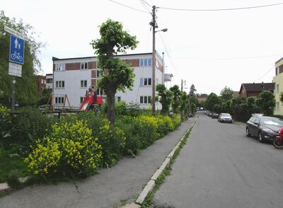 Den er tilstøtende til veien Langengen (tidligere del av Ensjøsvingen), og krysser veien Flatengen.