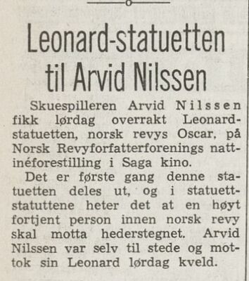 - Aftenposten 16. oktober 1968, notis om den kommende første utdelingen av Leonardstatuetten