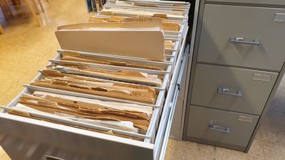 Det stoffet som er kome inn og arkivert i arkivskåp, er dessverre ikkje katalogisert, så det er litt utfrodrande å finne fram i det.