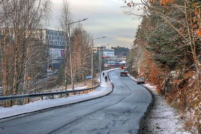 Parti fra den nordligste delen av Liakollveien med Holmlia senter i bakgrunnen.