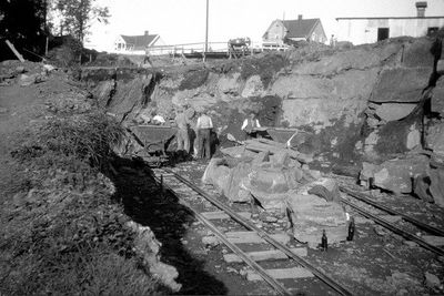 - Fra byggingen av Lilleakerbanen rundt 1916, traseen sett fra Mærradalsbekken mot Ullern kirkeFoto: Narve Skarpmoen/Oslo Museum