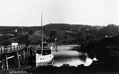 Rutebåten Strømmen ved kai i Dampskipskanalen som lå like ved Lillestrøm stasjon.