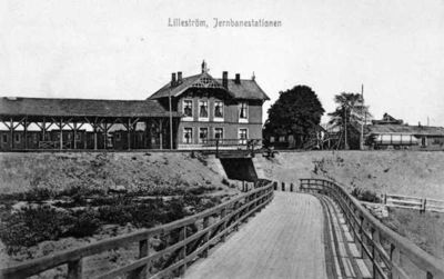 Lillestrøm stasjon ble anlagt på Hovedbanen i 1854. Den ble bygd nedenfor tunet på Lille Strøm gård i Rælingen, og fikk navnet Lille Strøm Station. Det var arkitektene Heinrich Ernst Schirmer (1814-1887) og Wilhelm von Hanno (1826-1882) som tegnet stasjonsbygningen. Fra stasjonen ble det lagt et industrispor til tømmeropplagene på østsida av Nitelva, og sporet ble senere forlenget til Dampskipskanalen der det var opplagsplass for fløtetømmer og en trebrygge for dampbåten DS «Strømmen» som fraktet passasjerer og varer fra bygdene ved Øyeren. I 1862 ble stasjonen flyttet til østsida av Nitelva.