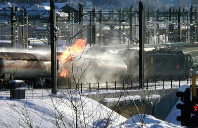 Natt til 5. april 2000 oppstod det en propanbrann på stasjonsområdet. Et godstog med blant annet to tankvogner som inneholdt 46 tonn kondensert propan, kjørte inn i et godstog som sto i ro på stasjonen. Vognene sporet av, propangass begynte å lekke ut og etter noen minutter var gassen antent. Situasjonen var svært spent like fra det ble konstatert gasslekkasje til brannen var slukket 9. april. Brannen fikk store konsekvenser, og den kunne ha utløst en katastrofe. Historien om brannen finnes her.
