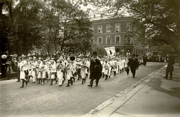 Uke 6 / Veke 6Ukas bildespørsmålHver uke velger vi ut et bilde på Lokalhistoriewiki som vi trenger mer opplysninger om. Som bruker på wikien kan du selv gå inn og tilføye opplysninger på bildesiden – der du også kan finne de opplysningene vi har allerede – eller du kan skrive på bildets diskusjonsside. Her er vi ikke bare ute etter fasitsvar – alle hint er velkomne så vi kan sirkle oss inn mot svaret. Hva skjer, og når skjedde det? Flagg og symboler kan være hint om hva som foregikk ved Universitetsplassen da dette bildet ble tatt en gang mellom 1899 og 1930. Foto: Narve Skarpmoen |
