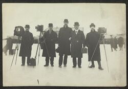 Uke 53 / Veke 53Ukas bildespørsmålHver uke velger vi ut et bilde på Lokalhistoriewiki som vi trenger mer opplysninger om. Som bruker på wikien kan du selv gå inn og tilføye opplysninger på bildesiden – der du også kan finne de opplysningene vi har allerede – eller du kan skrive på bildets diskusjonsside. Her er vi ikke bare ute etter fasitsvar – alle hint er velkomne så vi kan sirkle oss inn mot svaret. Thorkel Jens Thorkelsen fotograferte disse sportsfotografene på Frogner stadion i 1910. Men hvem er de? Foto: ukjent |