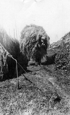 Nøyaktig tidfesting for omtalen av gardsarbeidet er ikkje fastsett her, men gjeld første halvdel av 1900-talet, og særleg mellomkrigstida. Verken det første eller andre hamskiftet i jordbruket viser seg i liten grad på øya, men hesten som kom til øya like etter krigen, letta jordbruksarbeidet på dei fire bruka. Jordbruket vart drive på ein tungvinn måte, og særleg krevde slåtten mange arbeidshender. Lars Lunnøy uttrykkjer det slik: «Kvar einaste neve, frå ungane sine små nevar til dei gamle og utslitne kvinnene og mennene sine nevar, var like viktige i alt arbeid på land og sjø heile året, og særleg når det gjaldt jordbruket». [20]. Folketalet gjekk ned i heile etterkrigstida, og gardsbruka vart nedlagde eitt etter eitt frå 1960-åra.