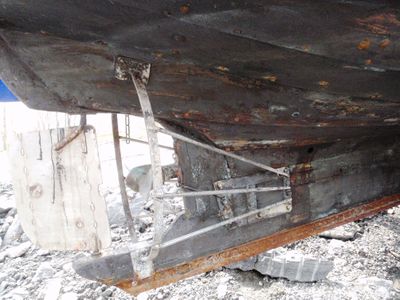 For styrken sin del ser vi her at stilken støttar seg ned på den nye kjølen. Alt etter kva behovet var, vart det lagt flatjern på begge sider med gjenomgåande skruar for auka styrke.