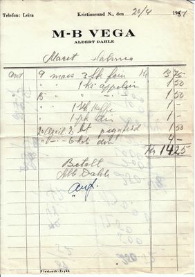 I 1947 eller 1948 kjøpte Albert Dahle MB «Vega» av Knut Eide, som hadde drive rutekjøring med båten ein stad i Moldedistriktet. Ikkje lenge føre Albert Dahle kjøpte båten, hadde han vorte oppussa og fått innsett ny motor, og båten var stødig i drift og hadde sjeldan motorhavari. I Albert Dahle sitt eige gjekk MB «Vega» som passasjer- og godsbåt mellom Kristiansund og både yttersida og innersida av Tustna etter faste ruter. I periodar var det ekstra mykje gods, inkludert når det skulle leverast kraftfôr, så det gjekk mange ekstraturar med gods. Da ferjesambandet Kristiansund–Tømmervåg vart sett i drift i 1960, vart ruta nedlagt. Familien beheldt båten og bruka han til småturar fram til dei selte han kring 1967 eller 1968.