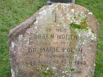 Marie Spångberg Holth er gravlagt på Vår Frelsers gravlund i Oslo sammen med ektemannen. Tittelen Dr. er benyttet på gravminnet.