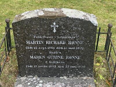 Rønne ble bisatt fra Møllendals kapell i Bergen 20. mai 1932. Han ble kremert i Bergen og urnen ble senere satt ned på Horten kirkegård. Titlene polarfarer og seilmaker er benyttet på gravminnet.
