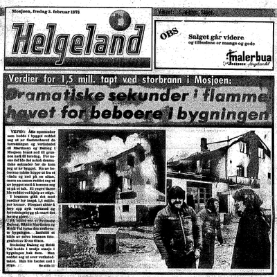 - Helgeland Arbeiderblad (03.02.1978): Dramatiske sekunder i flammehavet for beboere i bygningen