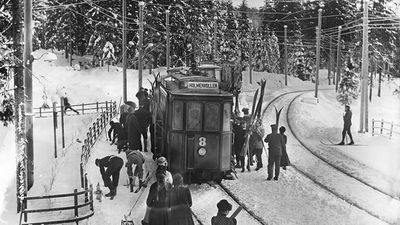 - Midtstuen stasjon ligger på en steinmur.Foto: Nasjonalbiblioteket