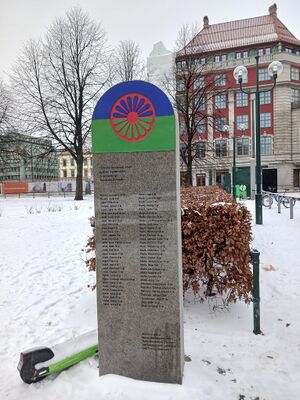 Minnesmerket over norske romer som ble drept under andre verdenskrig står på Christian Frederiks plass ved Østbanehallen i Oslo. Det ble avduket av kong Harald den 21. november 2025.[1]