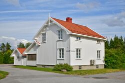 | 15 | Gnr. 101/195 Institusjon (sykehjem/hybelhus pr. 2010). Tomta utskilt fra bnr. 4 i 1947. Eier fra 1948, Anne O. Ajer. Huset oppført i 1949. Eier fra 1950, Signe Myhra. Eier fra 1953, Bjarne Hansen. | |