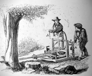 - For det første det industrielt produserte sagbladet og sagteknologien, som utviklet seg fra midten av 1800-tallet, og som innebar at saga gradvis erstattet øksa som det viktigste redskapet i skogbruket. De tidligste stålsagene var av engelsk fabrikat og ble introdusert i norsk skogbruk etter ca. 1850. Noe senere dukket tomanns buesager opp. Buesagene kom fra Tyskland og USA til Norge omkring 1890. Ti år senere, altså omkring 1900, skjedde et nytt lite sprang i utviklingen av den manuelle håndsaga, da enmanssaga – svansen – ble introdusert i norsk skogbruk av svenske skogsarbeidere. Saga fikk imidlertid ikke innpass overalt i Norge, i alle fall ikke samtidig. Det er tydelige regionale forskjeller. Andreas Vevstad, som har undersøkt overgangen fra øks til sag, kan fortelle at sagfellingen raskt fikk gjennomslag i enkelte typiske skogbruksbygder som Namdalen i Nord-Trøndelag. I andre områder av landet holdt derimot tømmerhugsten stand, for eksempel i Vestre Telemark og deler av Aust-Agder, der tømmerhoggerne nærmest gikk direkte fra øks til motorsag etter annen verdenskrig.