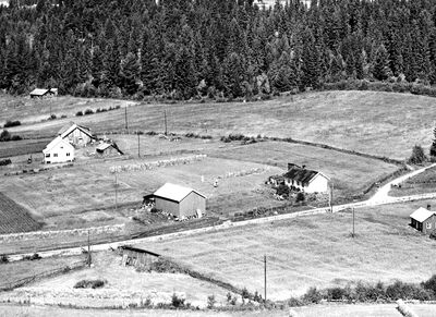 | Nordre Nauterud på flyfoto fra 1957. Nærmest vegkrysset med butikken i Sørroa. Foto: Widerøes Flyveselskap